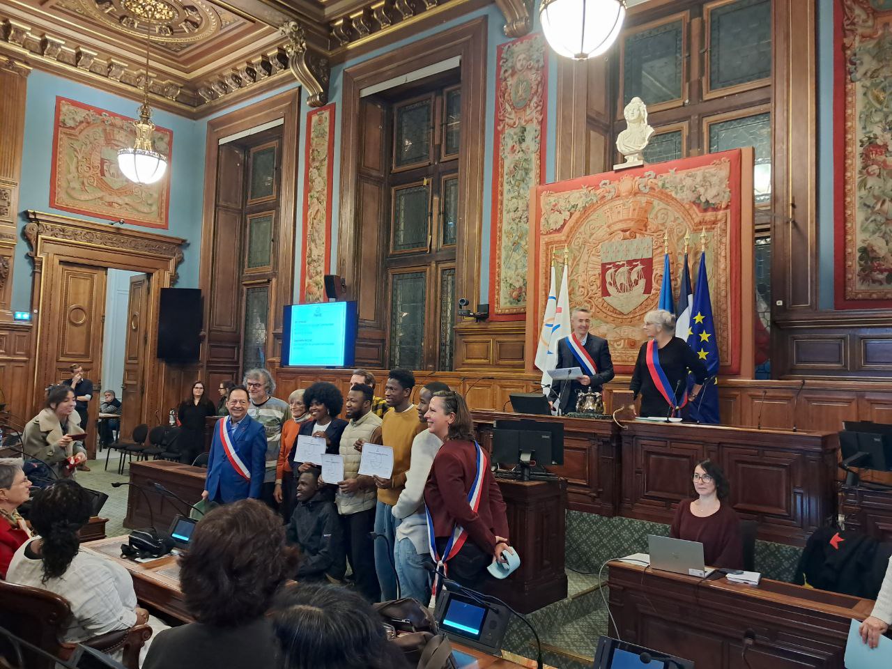 Du 5 au 20 décembre, les villes d’Annecy, Bourges, Chambéry, Grenoble, Louvigny, Montpellier, Paris et Tours ont ainsi organisé ce temps de reconnaissance de la citoyenneté des personnes exilées vivant sur leurs territoires. Organisées avec les acteurs associatifs du territoire, ces cérémonies sont généralement suivies d’un moment convivial et parfois d’une programmation culturelle plus large, comme à Bourges où un ciné débat autour du documentaire Welcome to Europe a été organisé, en présence des réalisateurs.